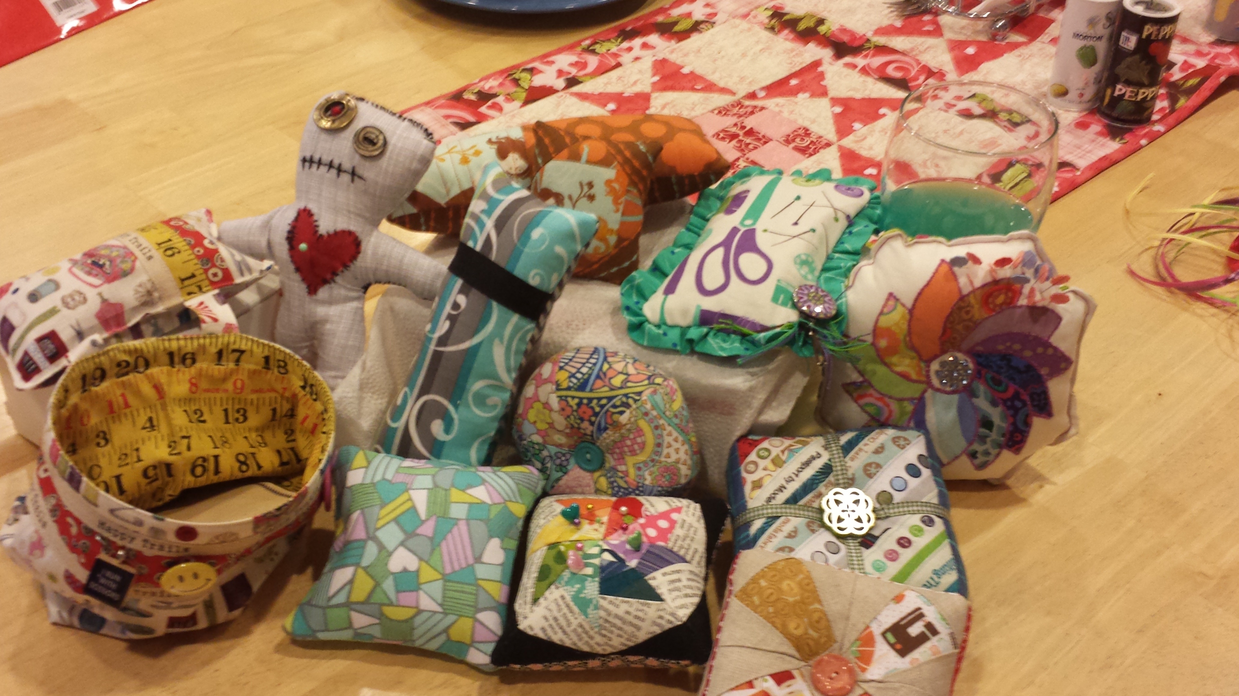 Lots of finished Quilt As You Go Bags – class taught by Lori Miller!! Lots of fun!Creativity at its best!another finished bag…….What a great idea!! PIN CUSHION exchange.Great game!! LRC Dice game – where winner took all!! Great job Rebecca.Pillow FIGHT!!Wrapping up a great weekend!!What a fun way to greet all of us!!Chesaning, MI